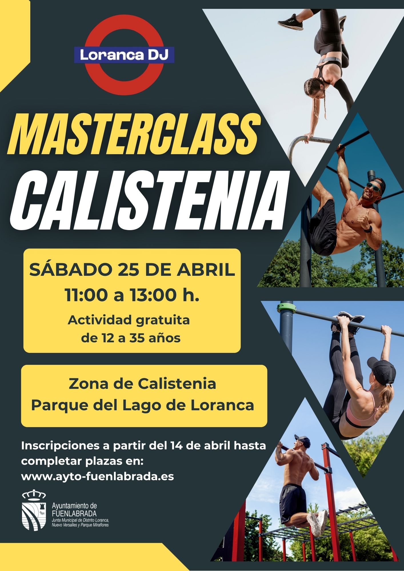 Lugar: Espacio de Calistenia en el Parque del Lago de Loranca (frente al CEIP Fregacedos)